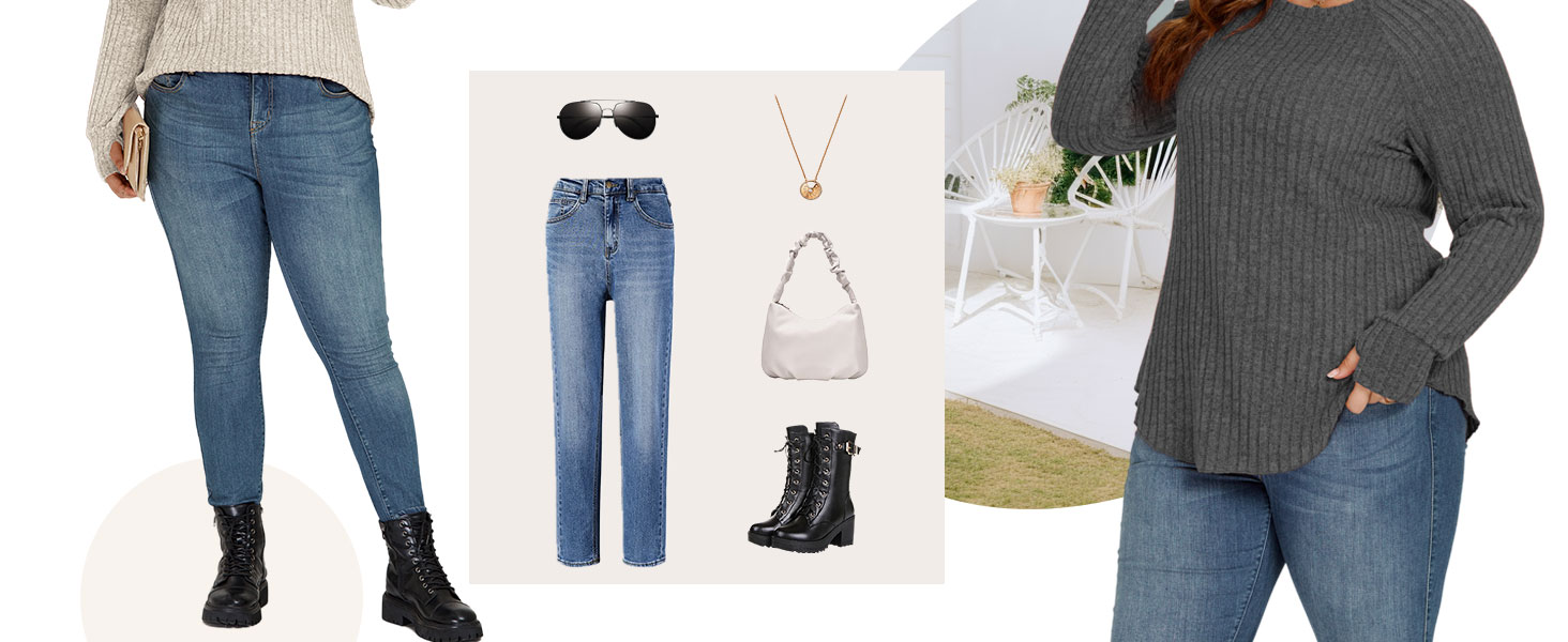 - Match: Plus size casual tops are easy to pair with jeans, leggings, skirts , etc. The crewneck design could be paired with necklaces, that will show your elegant and feminine style